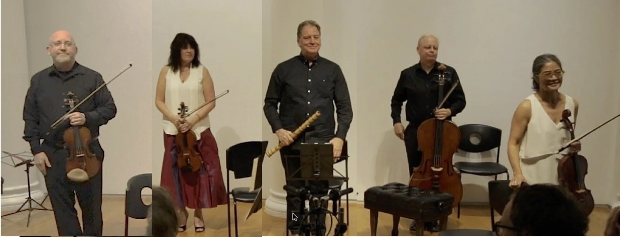 James. Nyoraku Schlefer, Bruce Huebner and Reison Kuroda on shakuhachi - Miyama McQueen-Tokita on koto - Muneko Otani on violin.